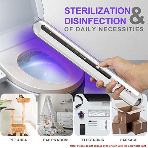 VANELC UV Mild Sanitizer Wand, Moveable UVC Mild Disinfection Lamp, Handheld Ultraviolet Mild Sanitizer with Quick Charging Kind-C for Dwelling, Family, Journey, Lodge, Automotive, Rest room, Pet Space