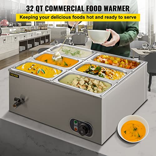 VEVOR 110V 6-Pan Industrial Meals Hotter 850W Electrical Countertop Steam Desk 15cm/6inch Deep Stainless Metal Bain Marie Buffet Massive Capability 7 Quart, Silver