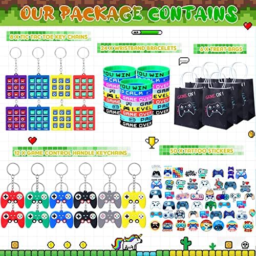Video Sport Themed Celebration Favors: the package deal incorporates 24 items of sport themed silicone bracelets, 12 items of online game keychain pendants, 6 items of plastic keyholders, 8 items of goodie sweet deal with luggage and 50 items of tattoo stickers, a complete of 100 items, characteristic online game parts and vibrant colours, match nicely with varied events