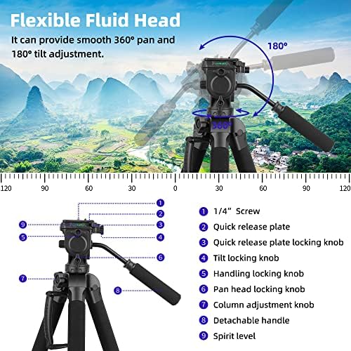 【SMOOTHER Motion with Fluid Head】The fluid head, designed with a wide-platform flat base, helps as much as 18 lb tools for extra stability. The pinnacle has unbiased pan and tilt lock, which might present clean 360° pan and 180° tilt adjustment. The angle might be switched at will to satisfy the wants of on-site taking pictures akin to weddings and micro films