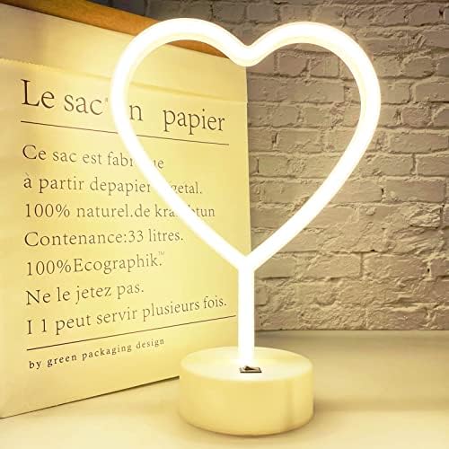 VIFULIN Coronary heart Formed Led Coronary heart Lamp Neon Coronary heart Lights Decor, Mild up Coronary heart Led Mild Signal Coronary heart Neon Signal with Base, Neon Coronary heart Evening Mild Signal Stuff USB/Battery Operated Coronary heart Lights for Bed room