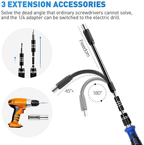 3、Numerous precision screwdriver:Screwdrivers for cellphones features a metallic extension rod, an elastic extension shaft, and a 1/4 adapter; it solves the lifeless angle that can’t be reached by small screwdriver instruments, and installs a small hand drill, which might clear up the robust screw that can’t be operated by hand, and has a wider utility vary.