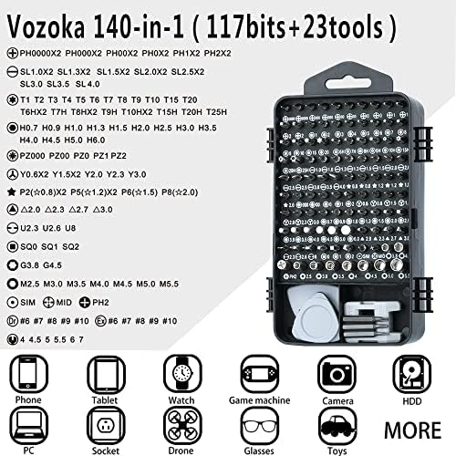 【140-In-1 Screwdriver Set】Vozoka Precision screwdriver package, accommodates the most typical 117 magnetic screwdriver bits and 23 mandatory instruments.No matter you’re a skilled or novice within the IT world, Repair your iPhone, PS4, PS5, xbox, gaming console, PC, laptop computer, macbook, smartphone, jewelers, or glasses like by no means earlier than.