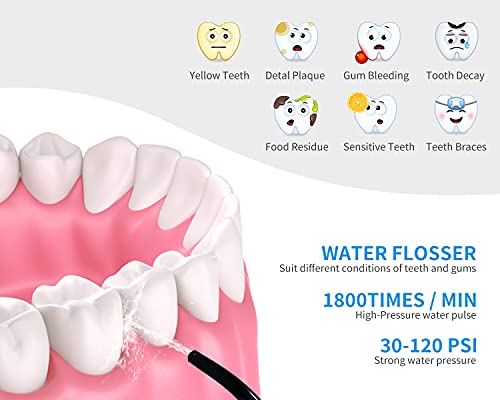 【Deeply Tooth Cleaner, Whiten Tooth and Enhance Gum Well being】With upgraded distinctive pulsation method, our water flosser can provide excessive strain water pulse 1400-1800 occasions/min, 30-120PSI robust water strain to take away 99.99% meals residue hidden deep, therapeutic massage the gum successfully and selling blood circulation.
