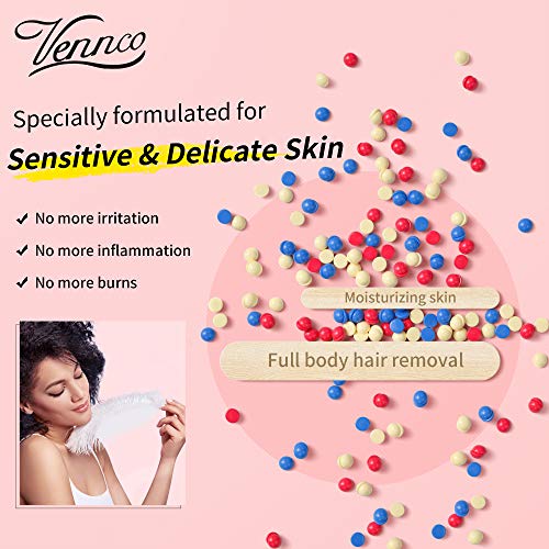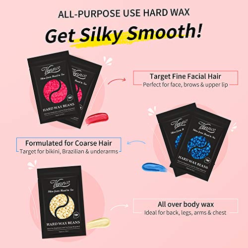 Waxing Package, VENNCO Wax Hotter Hair Elimination, House Wax Package with 17.5oz Onerous Wax Beads for Delicate Pores and skin Face Eyebrows Bikini Brazilian Waxing