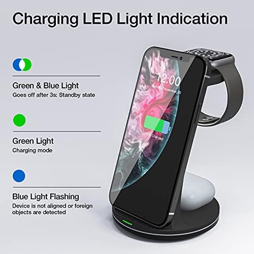 Wi-fi Charging Stand, 2022 Earteana Upgraded 3 in 1 Charging Station, Qi-Licensed 15W Quick Wi-fi Charger Dock Suitable with iPhone 13/11 Sequence, AirPods, Apple Watch SE/6/5/4/3/2(Black)
