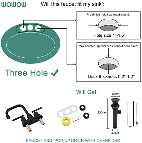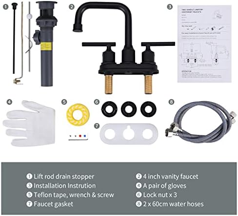 Simple set up: The black toilet faucet comes with a elevate rod drain meeting&a pair of gloves. 4-inch centerset and three gap mount design permit for straightforward set up.