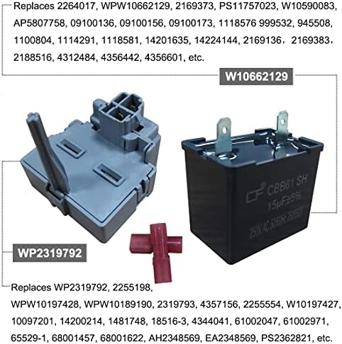 WP2319792 TSD2 Relay Begin Gadget and W10662129 Capacitor for Whirlpool Kenmore Fridge/Freezer Alternative Elements PS2362821 1547199 AH2362821