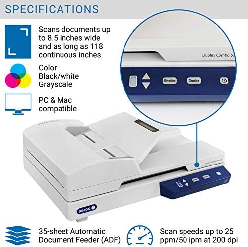 Xerox XD-COMBO Duplex Combo Flatbed Doc Scanner for PC and Mac, Computerized Doc Feeder (ADF)