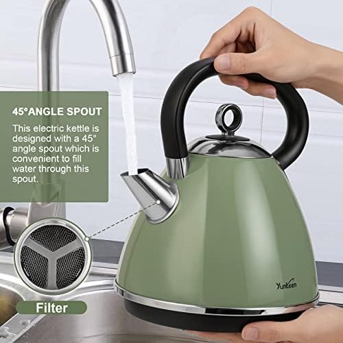 YUNLEEN 1500W 1.7L Electrical Kettle with Meals Grade Stainless Metal Inside Lid, Cordless with Auto-Shutoff& Boil-Dry Safety, Appropriate for Boiling Water and Making Tea,Triangle,Inexperienced