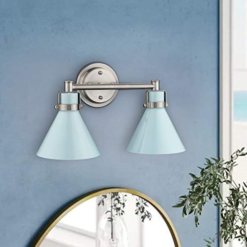 Zeyu 2-Gentle Rest room Self-importance Gentle, Trendy Rest room Wall Gentle Fixtures, Blue and Brushed Nickel End, ZY26-2W SF