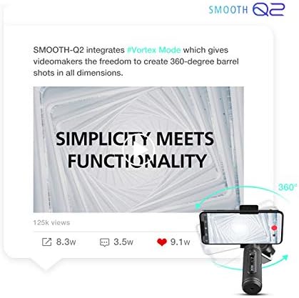 【Attain Extra Creativity】Easy Q2 helps 360 levels of rotation and has 3-axis stabilization, containing a Tilt motor, a Roll motor, and a Pan motor. Unleash your creative facet with SMOOTH-Q2 reminiscent of timelapse, vertigo shot, object monitoring, and panorama, and so on.